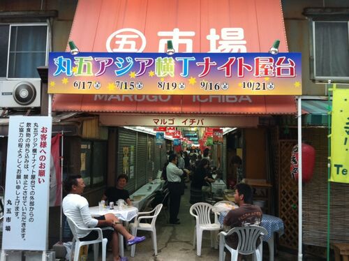 こんばんわ〜本日有志を募ってプチ・フィールドワークに行ってきました。 今回のフィールドはJR新長田駅から南東へ10分弱歩いたところにある丸五市場です。“丸五アジア横町ナイト屋台”というイベントが6月〜10月まで毎月第三金曜日に催されいます。時間は1…