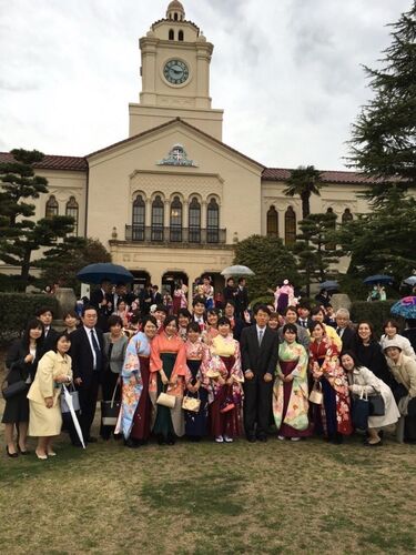 2015年度卒業式が3月18日に行なわれ、島村ゼミからは16名が卒業しました。当日は、社会学部優秀論文賞(安田三郎賞)の授賞式も行なわれ、島村ゼミの川合真由美さんが優秀論文賞を受賞しました。 受賞論文は、「『無形文化財』の創出と伝承―筑前博…