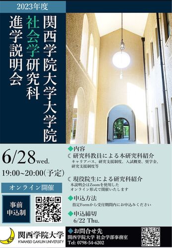 【現代民俗学の大学院】関西学院大学大学院社会学研究科では、現代民俗学を学べます。 進学説明会(6月28日(水)19:00~20:00)はこちら。 https://www.kwansei.ac.jp/s_sociology/event/detail/14